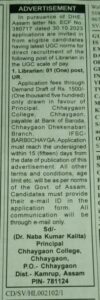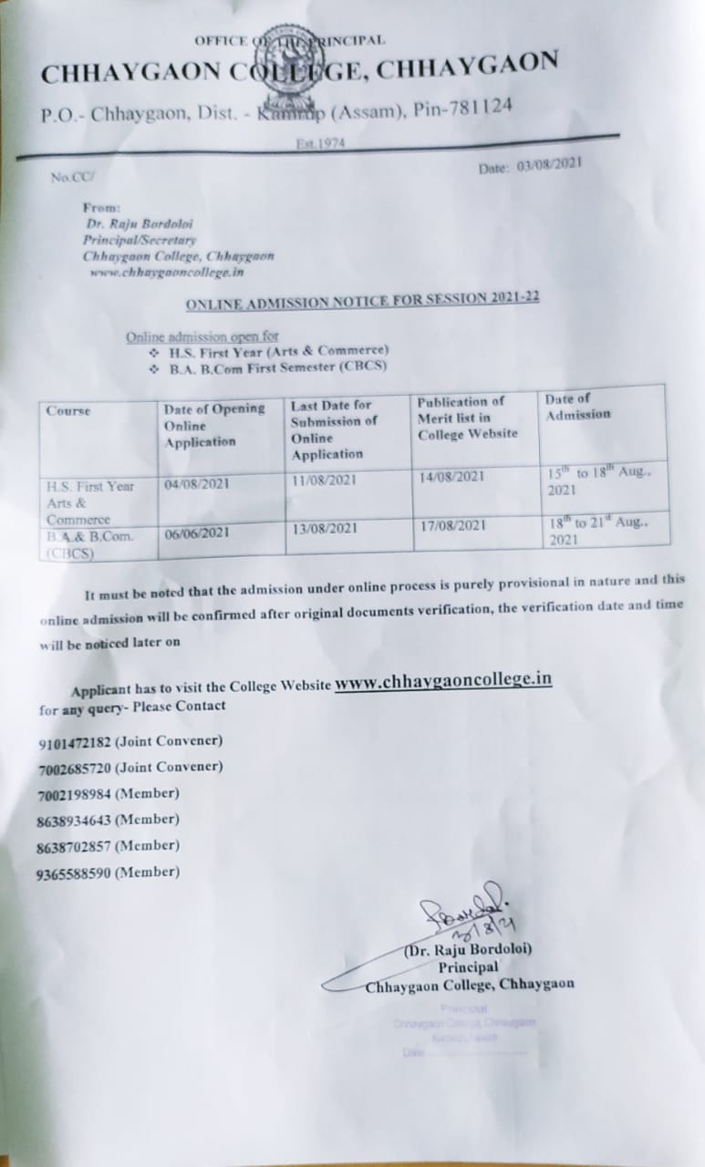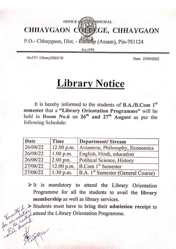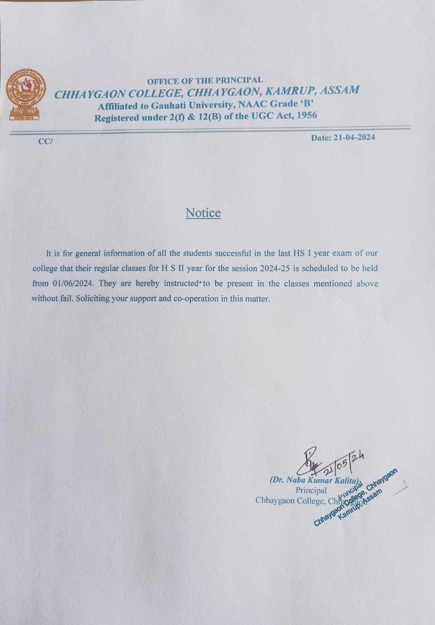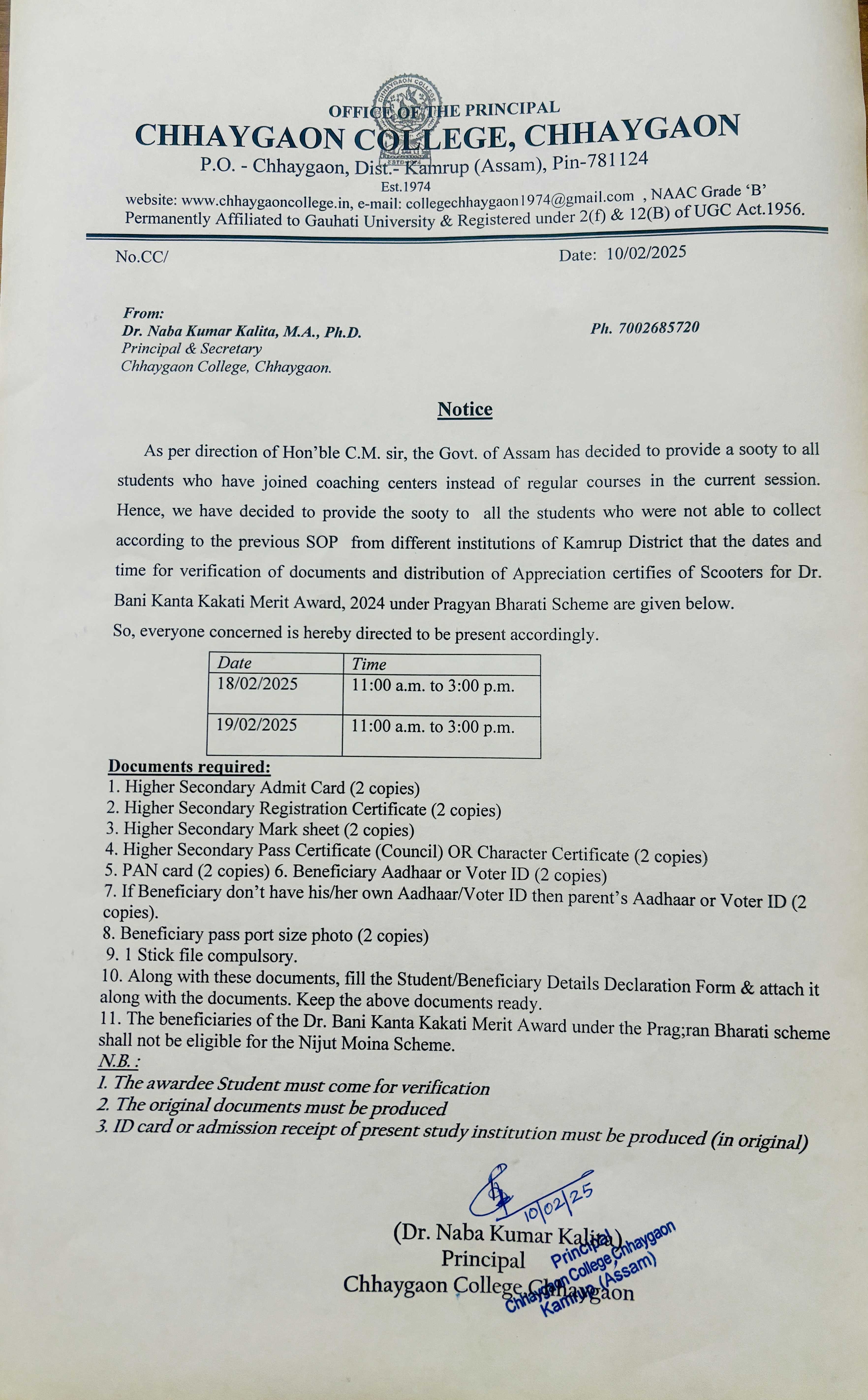 | 1 | Notice regarding verification ofdocuments of concerned students from different institutions who are eligible for Dr. Banikanta Kakoti Award (Scooty) after at Chhaygaon College |