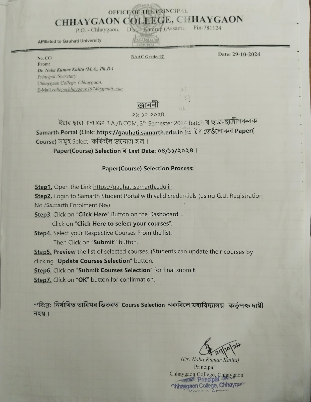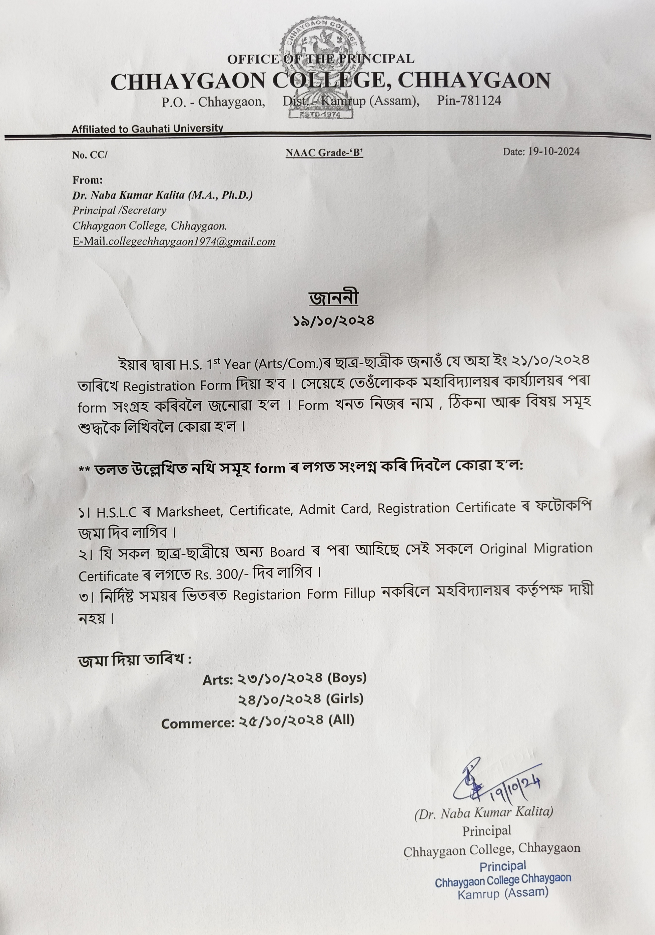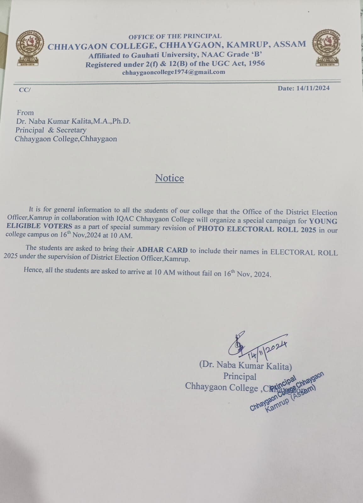 | 6 | Notice regarding submission of MMNMA Form to the Office of Chhaygaon College on or before 19th November, 2025 | 2025-11-17 | View File |