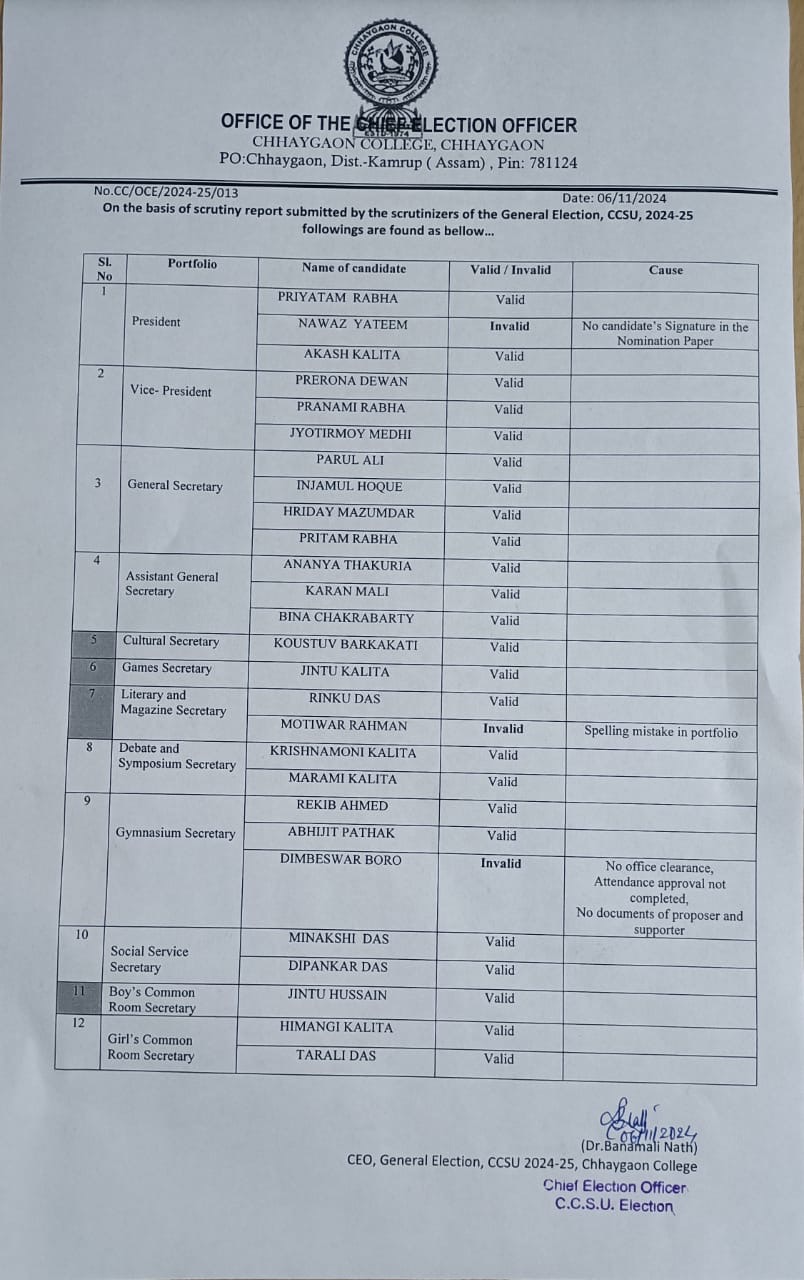 | 84 | Nomination papers' Scrutiny Report, General Election, CCSU, 2024-25 | 2024-11-06 | View File |